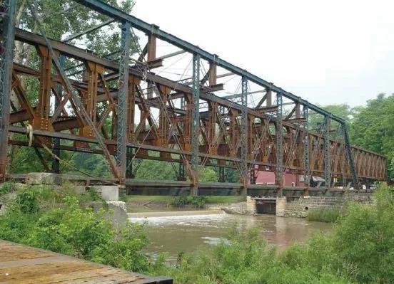 這座印第安工廠橋最初建于1913年,跨度為177ft.(約53m),單車道,采用雙腹材普拉特下承式桁架。橋梁性能日漸退化,直到它引起了懷安多特縣的工程師Michael B. Kohl的注意。鑒于這座橋梁的特殊位置,Kohl啟動了一個項目來考察如何對該橋梁結(jié)構(gòu)進(jìn)行保護(hù)。俄亥俄州曼斯菲爾德的一家土木/結(jié)構(gòu)公司——Richland工程有限公司被選中進(jìn)行修復(fù)方案的制訂,并最終給出了橋梁的修復(fù)方案。